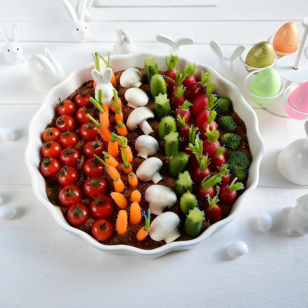 Présentez l’Apéritif Potager de Pâques au centre de la table pour créer un effet surprise immédiat. Servez-le frais, accompagné de légumes supplémentaires. Ce plateau coloré attire naturellement le regard et invite à piocher. Il s’intègre parfaitement dans un buffet de fête ou un brunch pascal.