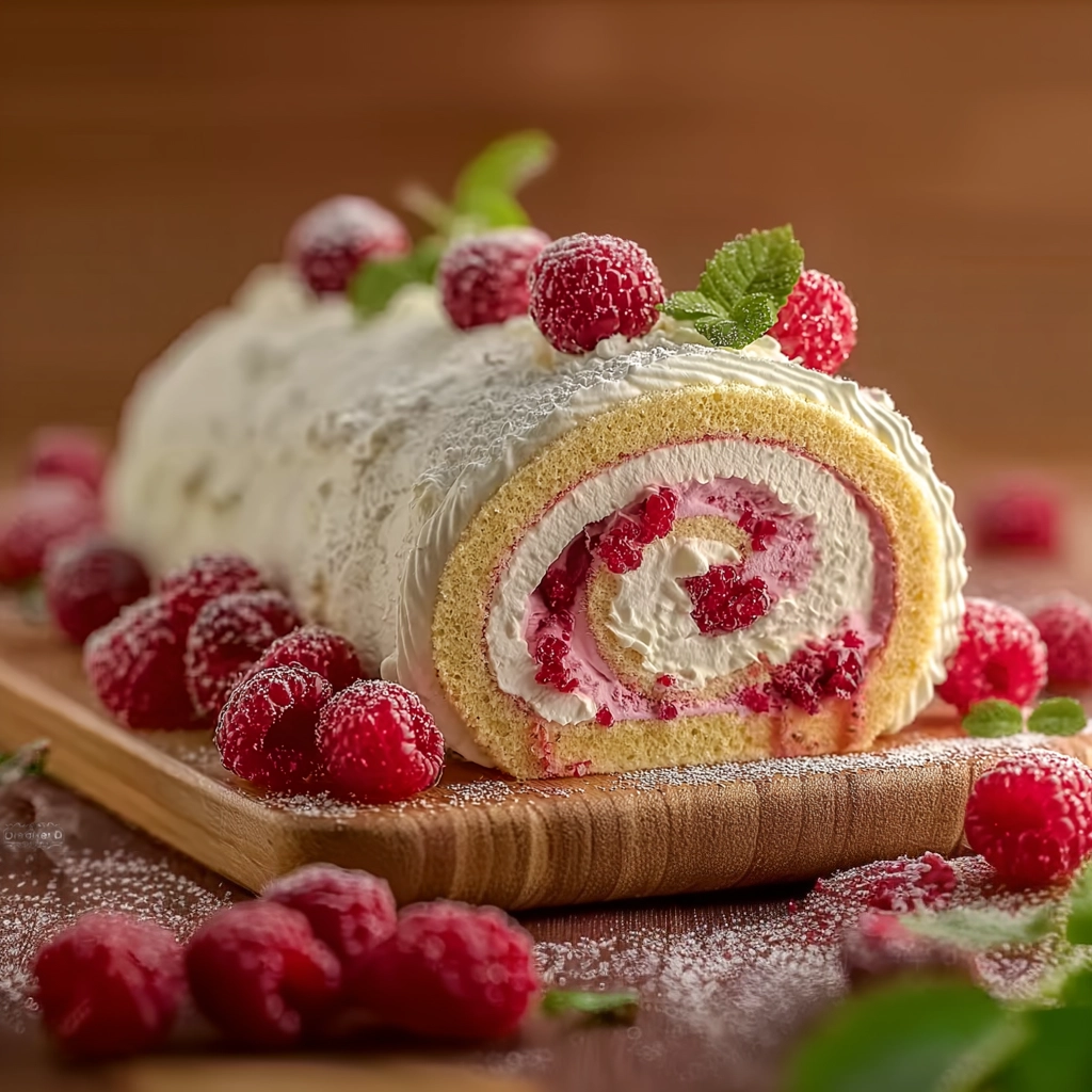Ce qui rend cette bûche unique, c’est son équilibre. La chantilly mascarpone apporte une texture onctueuse et soyeuse, le biscuit roulé reste moelleux et légèrement sucré, tandis que les framboises fraîches offrent une pointe d’acidité qui réveille les papilles. Le tout forme une harmonie parfaite pour clôturer un repas festif. Ce dessert de Noël n’est pas seulement délicieux : il est aussi visuellement magnifique. Un nuage blanc délicatement roulé, parsemé de framboises éclatantes et d’un soupçon de sucre glace.