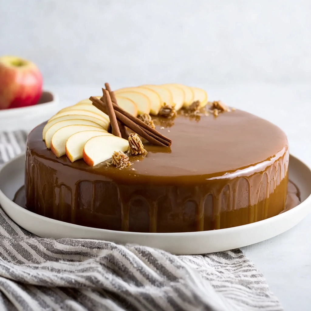 Mots clés: entremets pomme caramel, gâteau mousse pomme, dessert caramel, glaçage miroir