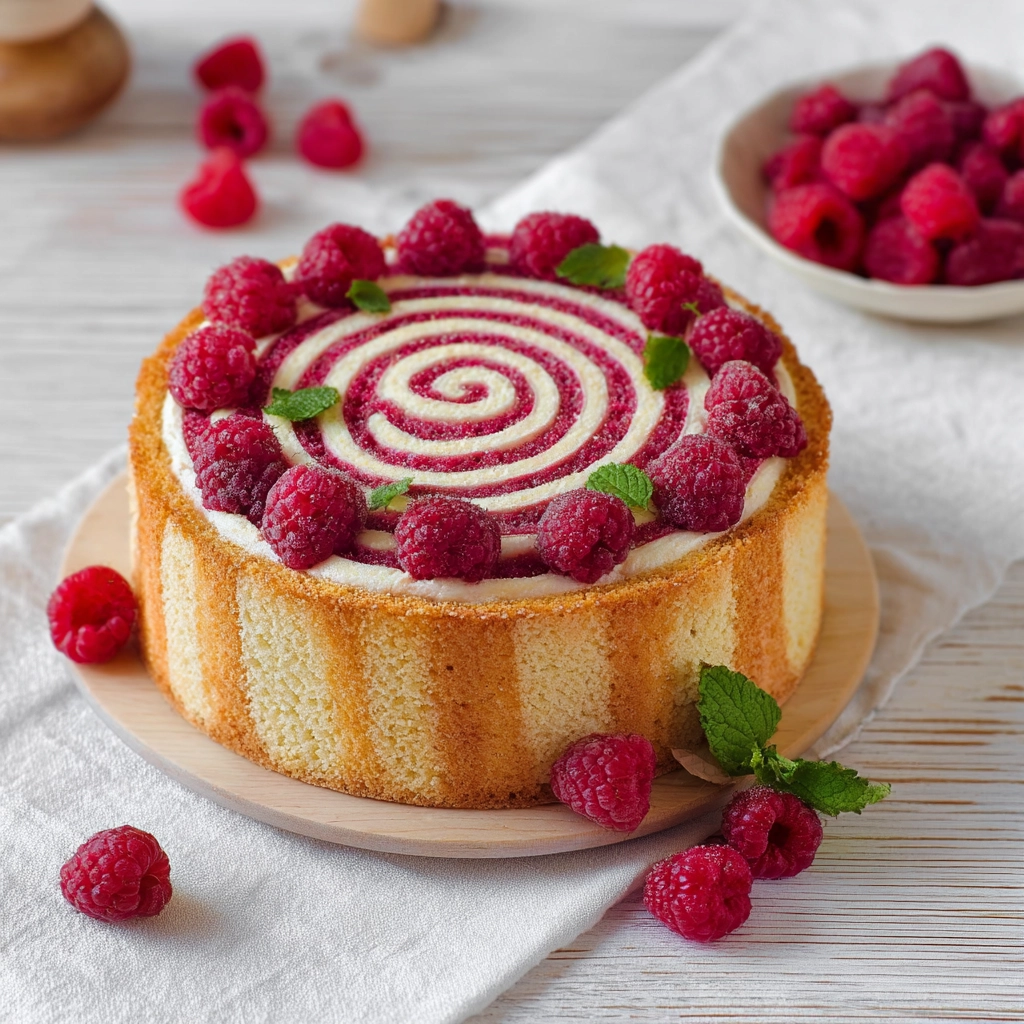 Couper les bandes à l’aide d’une règle assure une spirale régulière. Garder un peu de crème pour masquer les éventuels interstices permet une finition nette. Des framboises bien fermes, ajoutées au dernier moment, apportent éclat et fraîcheur visuelle.