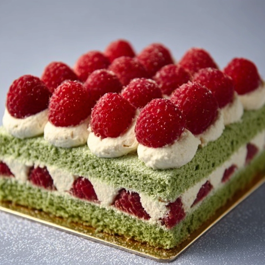 Quand tu goûtes ce gateau pistache framboise creme diplomate, tu sens immédiatement la fraîcheur des fruits rouges. La framboise ouvre la dégustation avec une intensité nette. Puis la crème diplomate suit avec une douceur raisonnable qui apaise tout de suite la vivacité du fruit. La pistache, discrète mais présente, arrive en fond pour donner une identité plus affirmée au dessert. Cette progression rend chaque bouchée plaisante et facile à apprécier, même après un repas copieux.