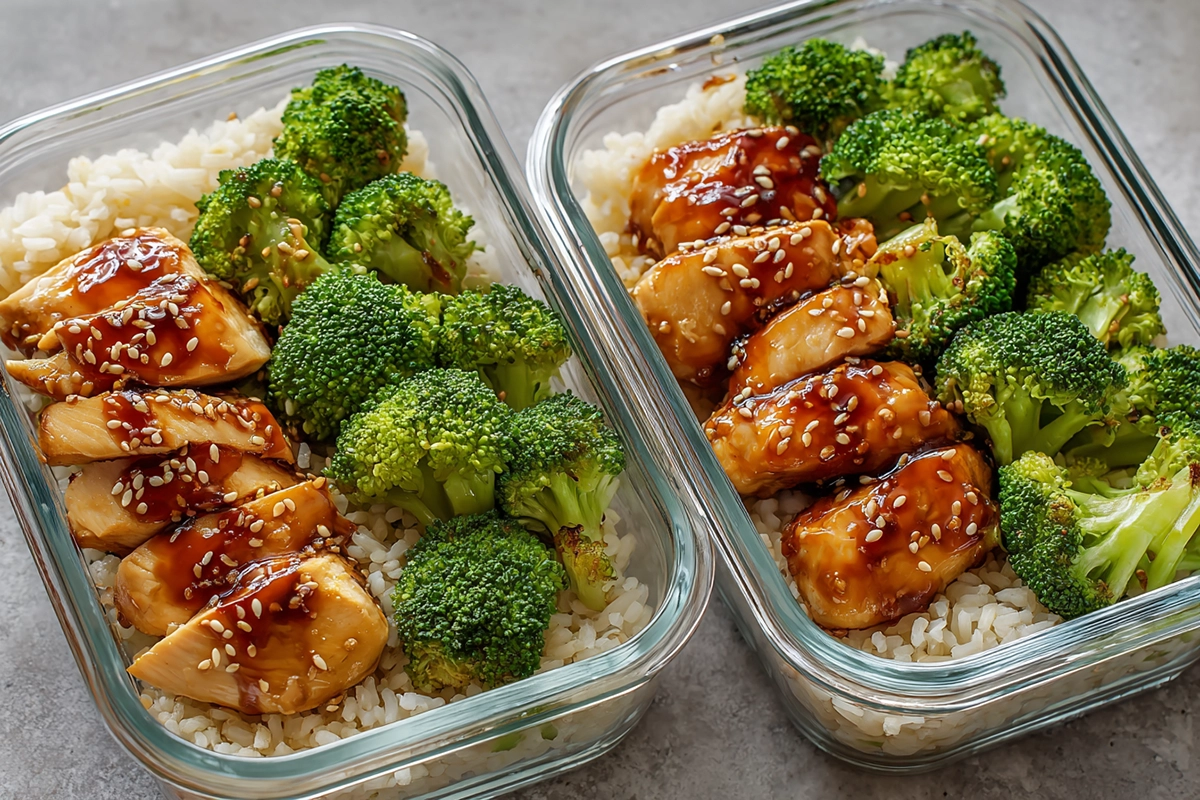 Un meal prep équilibré et plein de saveurs, parfait pour vos déjeuners de la semaine. Ce poulet teriyaki maison combine une sauce sucrée-salée onctueuse, des légumes croquants et un riz nourrissant. Une recette simple, saine et rapide, idéale pour planifier vos repas sans stress !