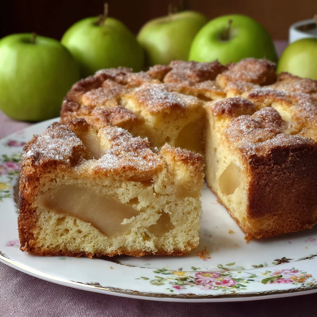 Gâteau aux pommes moelleux façon grand-mère, idéal pour le dessert ou le goûter.