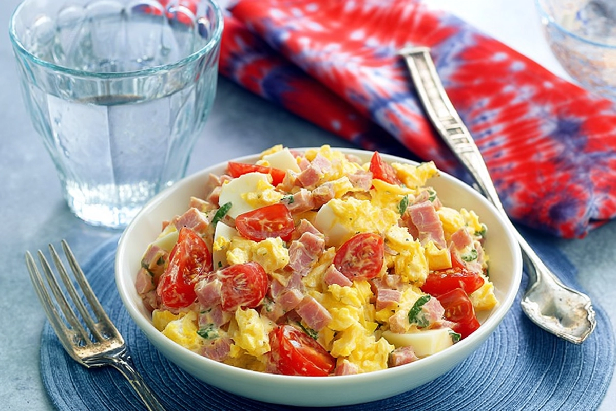 Remplacez le jambon par des dés de tofu fumé ou du fromage de type feta, et ajoutez une pincée de paprika pour relever l’ensemble.
