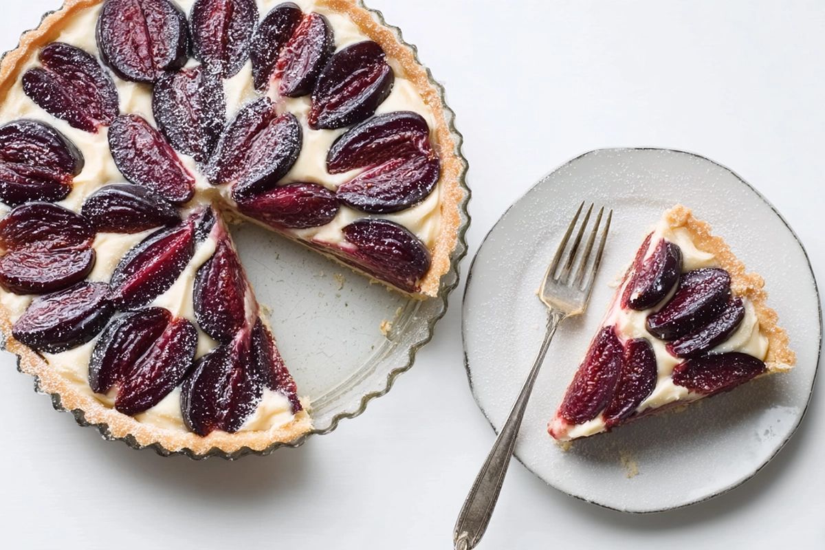 Une tarte aux quetsches élégante et gourmande, garnie de prunes juteuses et d’une crème d’amande fondante. Ce dessert français d’automne associe croustillant, acidulé et douceur, parfait pour un repas raffiné ou un goûter en famille.